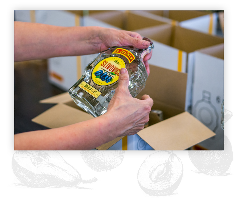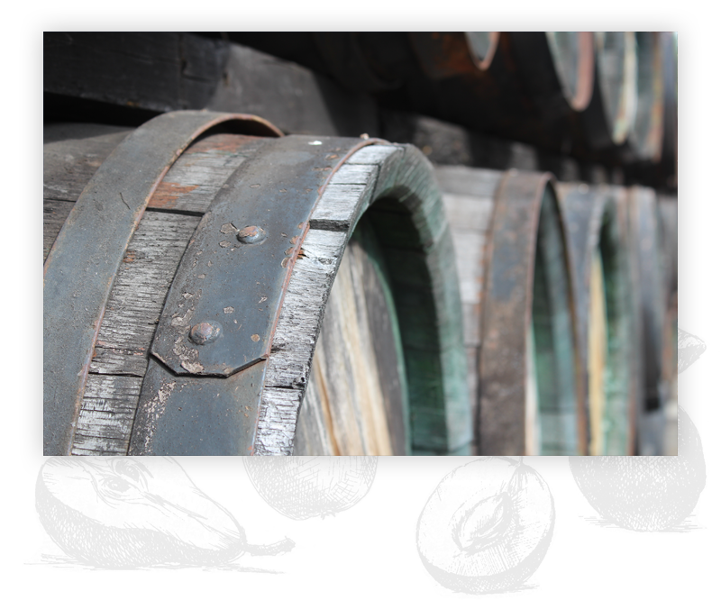 Golden slivovitz ages in oak barrels
